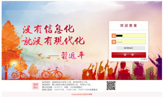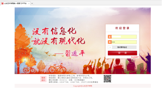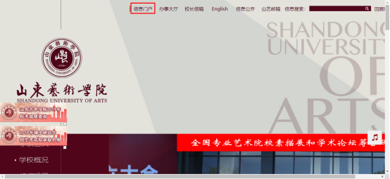 通过浏览器,打开山东艺术学院官网,选择导航栏中的“信息门户”。